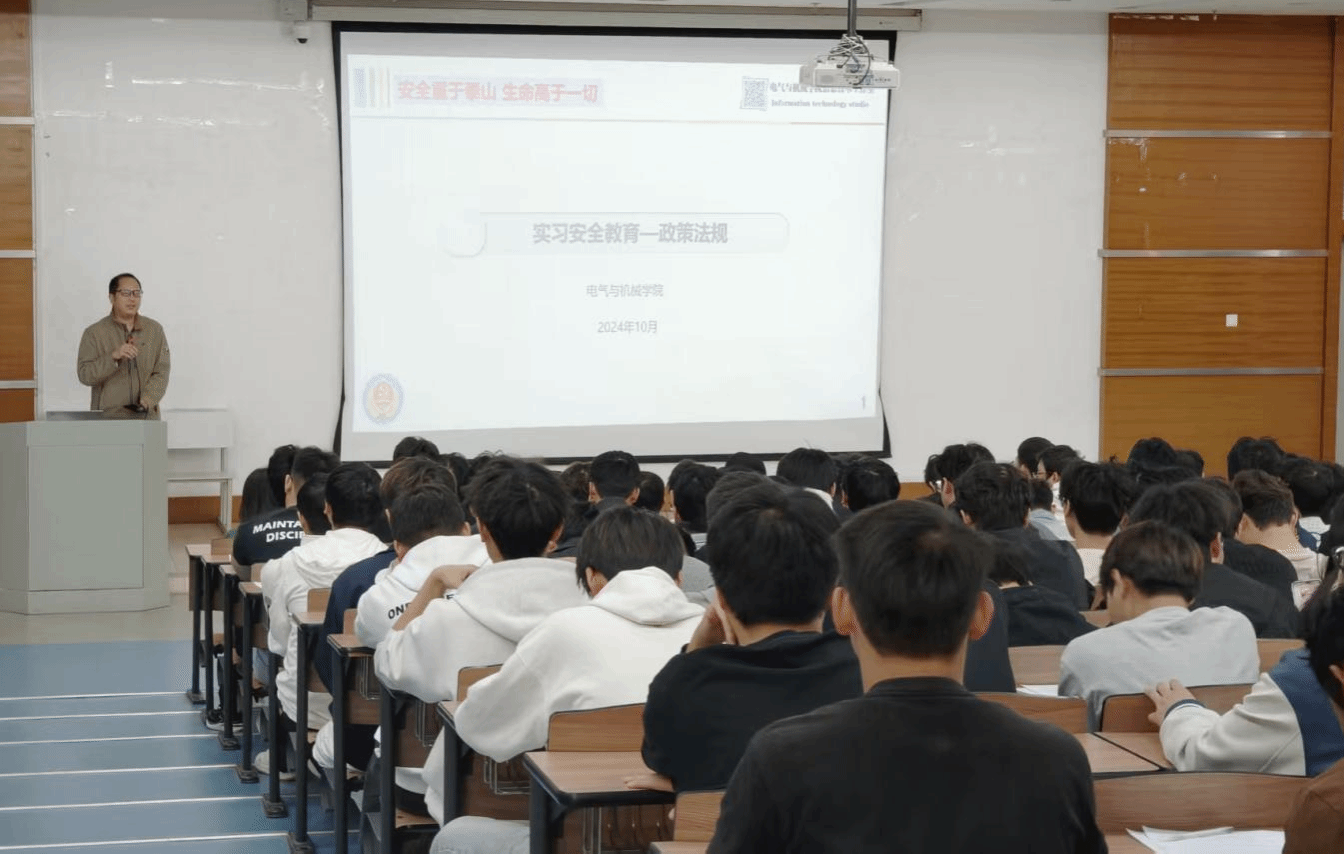 随后,郝世宇老师强调了实习期间安全的重要性,并提醒同学们在实习期间要时刻注意人身安全和财产安全。他要求同学们牢记三个要点:一是严守安全底线,杜绝参与任何危险行为,自觉遵守国家法律法规及实习单位规章制度;二是保持信息畅通,遇到困难或突发情况,应及时向家长、指导教师或实习单位报告并寻求帮助;三是主动防范,切实做到防抢、防盗、防骗、防传销,提高安全防范意识。