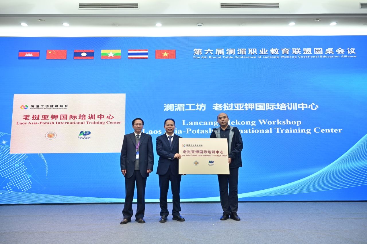 当天下午,在第六届澜湄职业教育联盟圆桌会议上,杨金华与项目合作方代表亚钾(云南)国际钾盐开发有限公司总经理曲瑞共同出席了澜湄工坊授牌仪式。