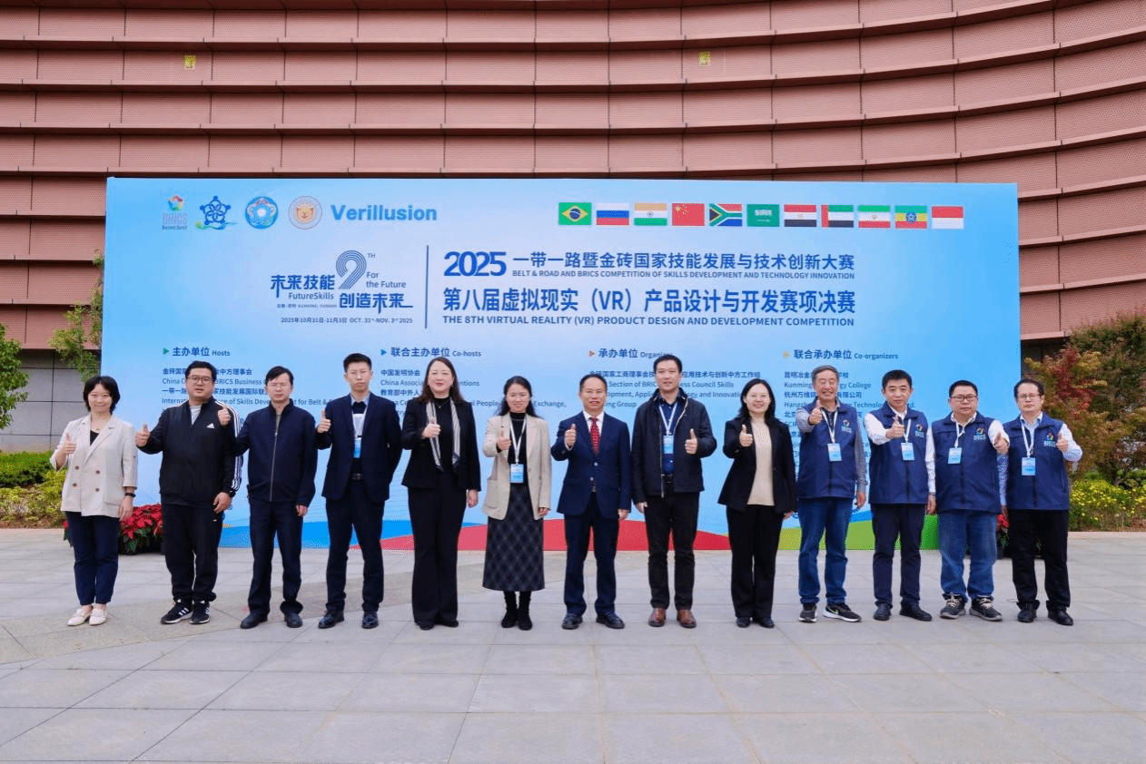 10月31日,2025一带一路暨金砖国家技能发展与技术创新大赛第八届虚拟现实(VR)产品设计与开发赛项决赛在我校开幕,金砖国家技能发展与技术创新大赛组委会执委会主席,一带一路暨金砖国家技能发展国际联盟理事长,金砖国家工商理事会技能发展、应用技术与创新中方工作组组长刘振英;我校党委书记杨金华,金砖国家技能发展与技术创新大赛组委会执委会国内竞赛办公室五处副处长吴秀春,北京企学研教育科技研究院院长助理、竞赛合作主任周海燕,辽宁省模具制造行业协会教育培训部主任赵世友,浙江大学能源工程学院潘常春,南京工程学院杨清林,杭州万维镜像科技有限公司邢永明等领导专家出席开幕式。开幕式由我校冶金与矿业党委书记马磊主持。