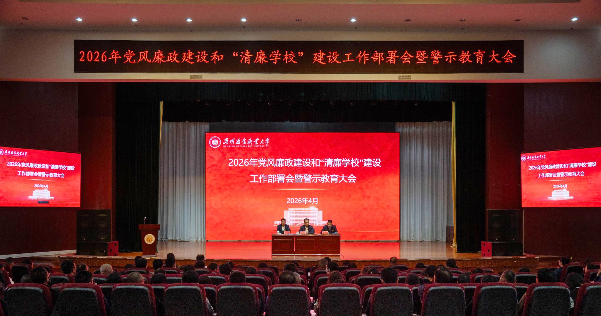 4月3日下午,学校组织召开2026年党风廉政建设和“清廉学校”建设工作部署会暨警示教育大会,认真贯彻落实二十届中央纪委五次全会部署,总结2025年学校党风廉政建设工作,部署2026年任务,动员全校各级党组织和党员干部弘扬自我革命精神,一刻不停推进全面从严治党,为学校“十五五”开好局、起好步奠定坚实基础。昆明冶金高等专科学校党政领导班子成员、副科级及以上实职干部参加会议,党委副书记杨永锋主持会议。
