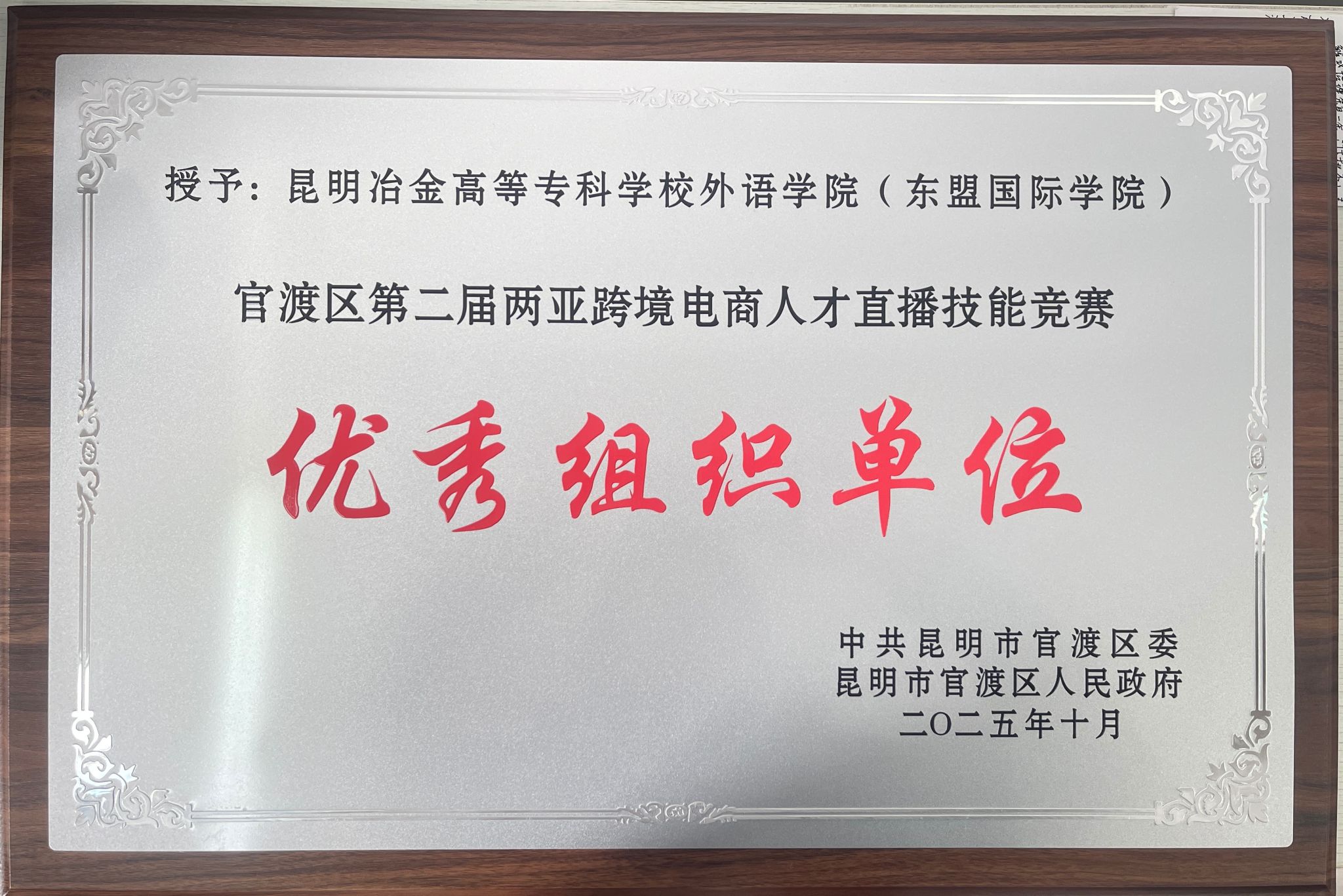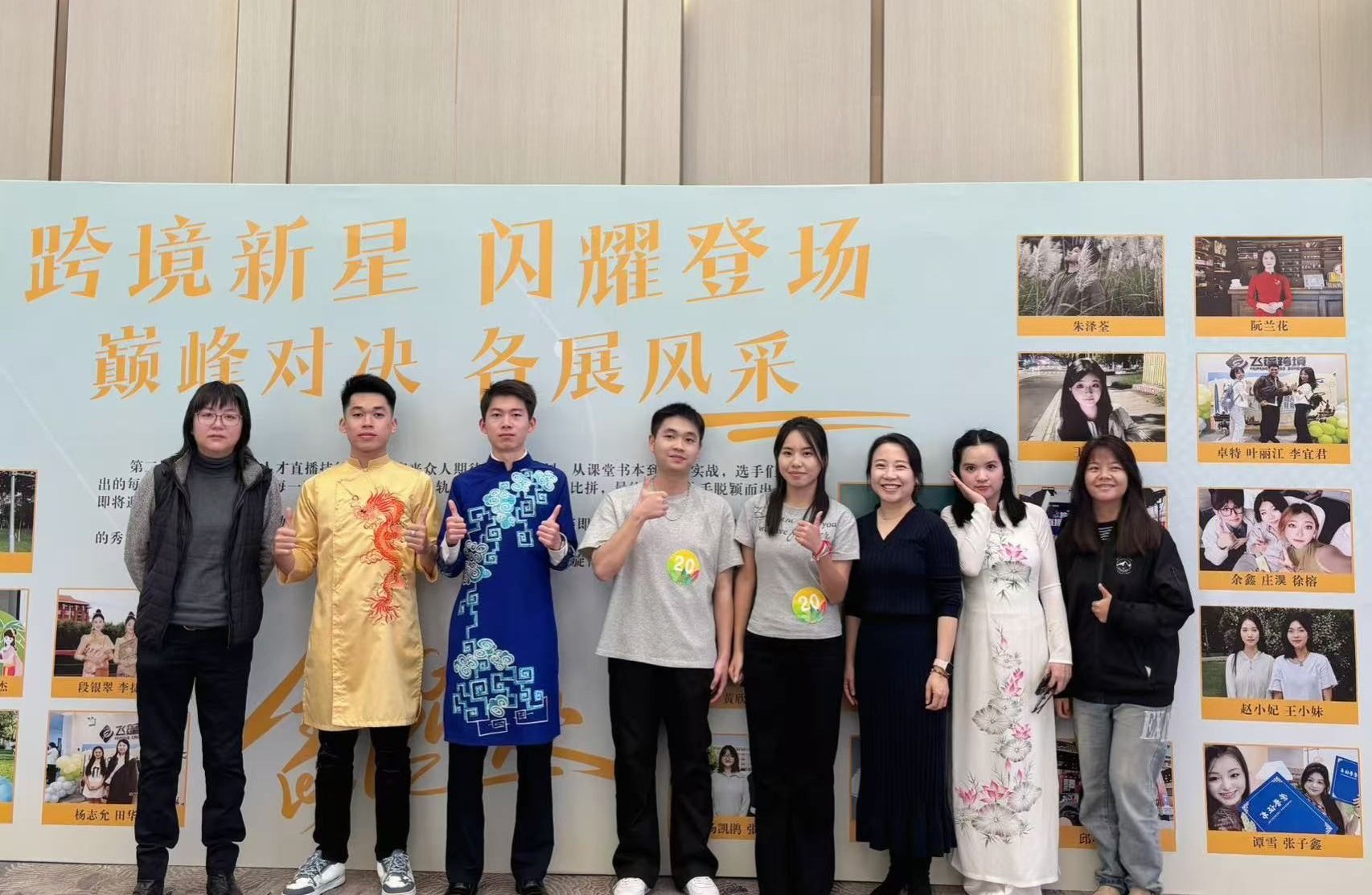 其中,我校外语学院(东盟国际学院)表现亮眼,由越南语2318班盘思越和简梦娟组成的团队以及汉语2309班越南留学生HUANG QUOC HUNG、NGUYEN QUYNH DIEP和老挝语2416班学生崔相杰组成的团队跻身决赛。决赛现场,我校参赛选手凭借扎实的专业素养与出色的直播技能,最终成功入选官渡区第二届两亚跨境电商直播技能竞赛人才库。同时,外语学院(东盟国际学院)荣获本次竞赛 “优秀组织奖”。
