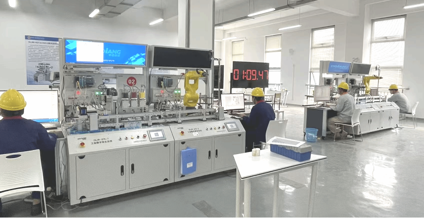 本赛项中,选手需完成工业产线的虚拟建模与逻辑规划,比赛内容涉及传感器软硬件调试、工艺流程仿真及系统集成,通过工业数字孪生平台实现产品参数化定制,优化生产资源配置与订单响应机制,重点考察选手的物理实体与数字模型的实时数据映射、故障诊断及系统可靠性分析能力,全程考察团队协作、安全意识、创新能力与问题解决能力。为备战本次大赛,我校参赛师生团队投入数月时间,系统开展设计与调试工作。