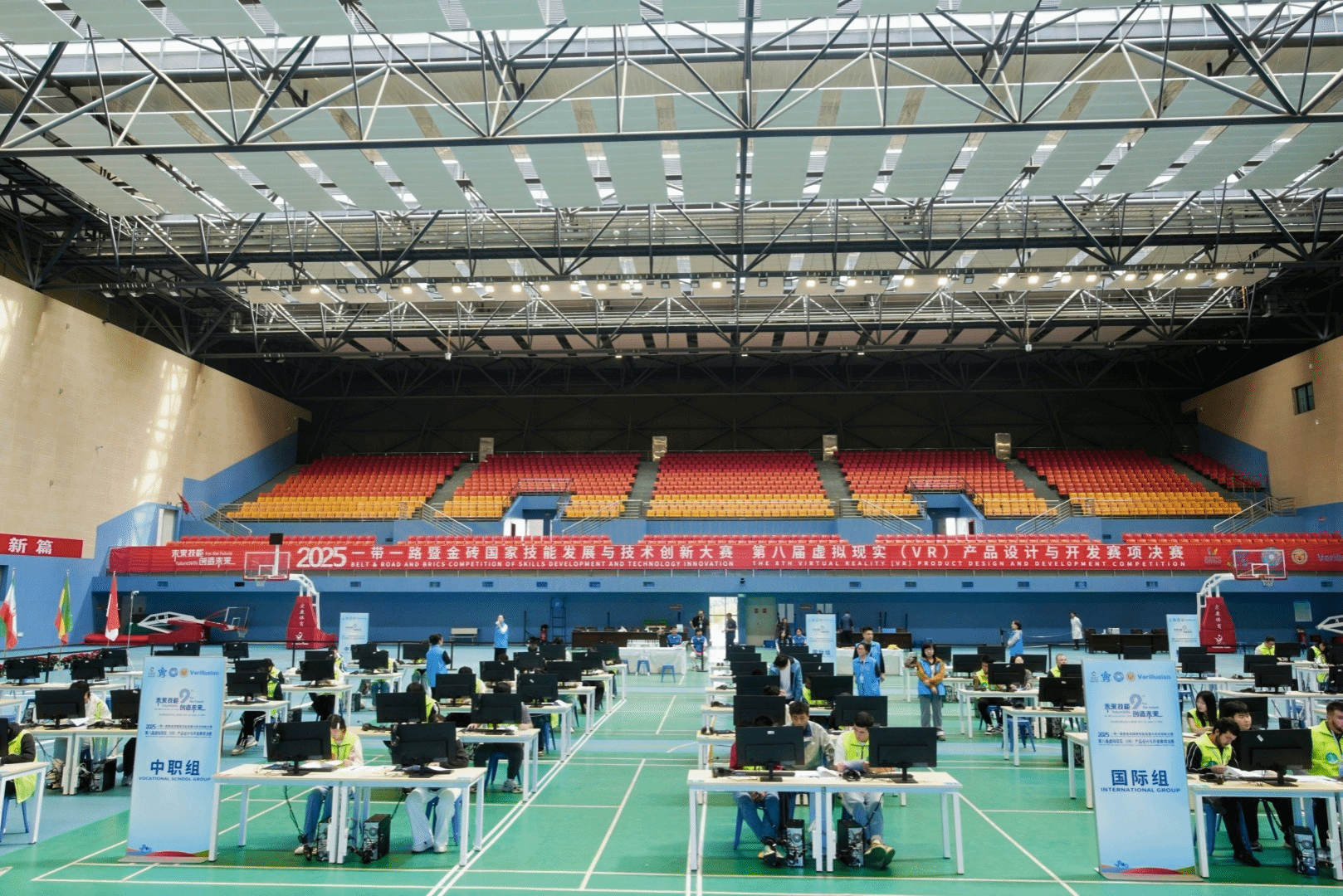 10月31日至11月2日,由金砖国家工商理事会中方理事会、一带一路暨金砖国家技能发展国际联盟等单位联合主办,我校承办的2025一带一路暨金砖国家技能发展与技术创新大赛第八届虚拟现实(VR)产品设计与开发赛项决赛在我校举行。