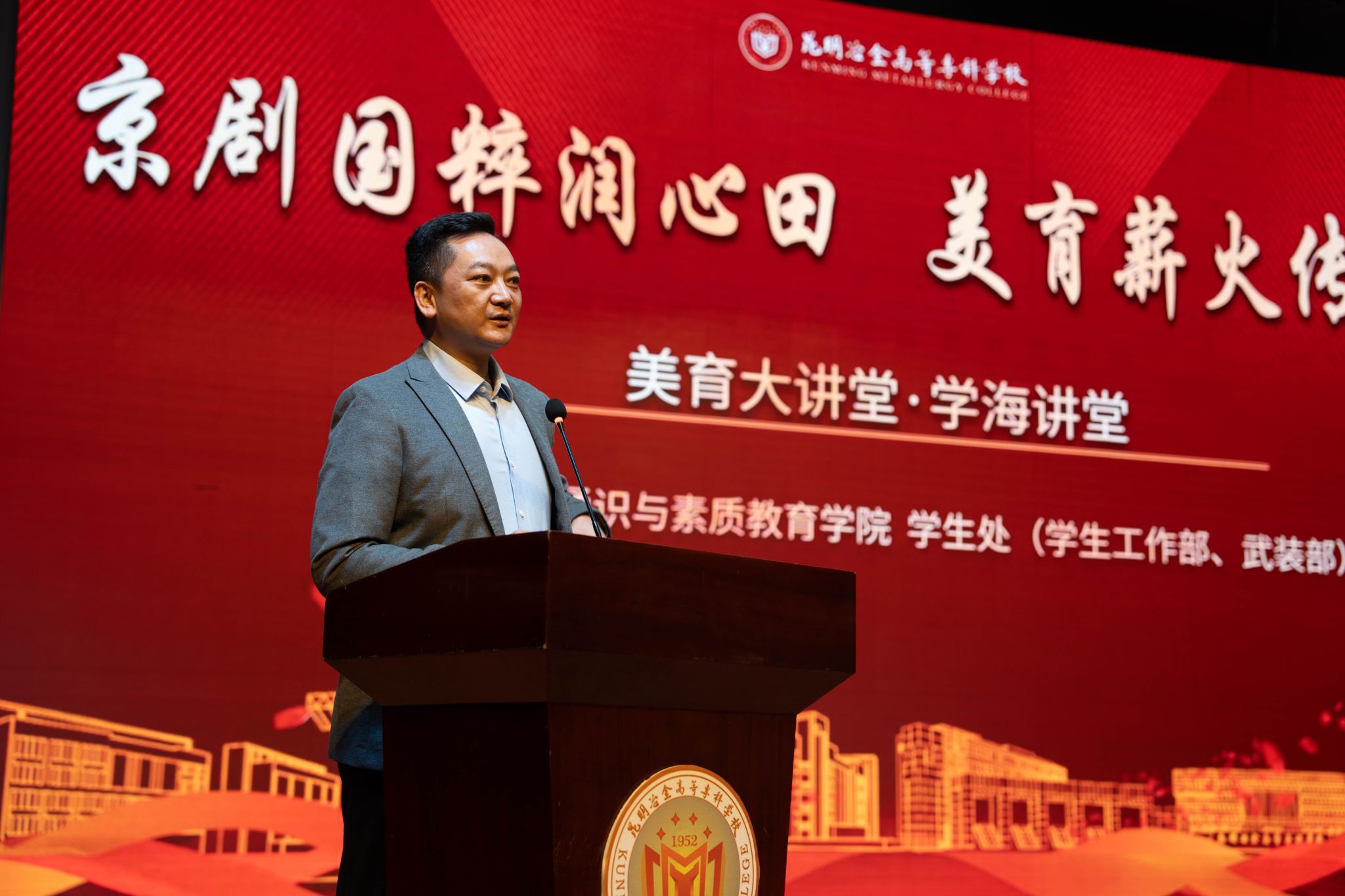 为响应国家美育浸润行动号召,弘扬中华美育精神,提升学生文化自信与审美情趣,11月7日下午,我校“美育大讲堂”第七期暨学海讲堂第241期——“京剧国粹润心田,美育薪火传青年”《中国京剧艺术鉴赏》活动在大学生艺术中心成功举办。