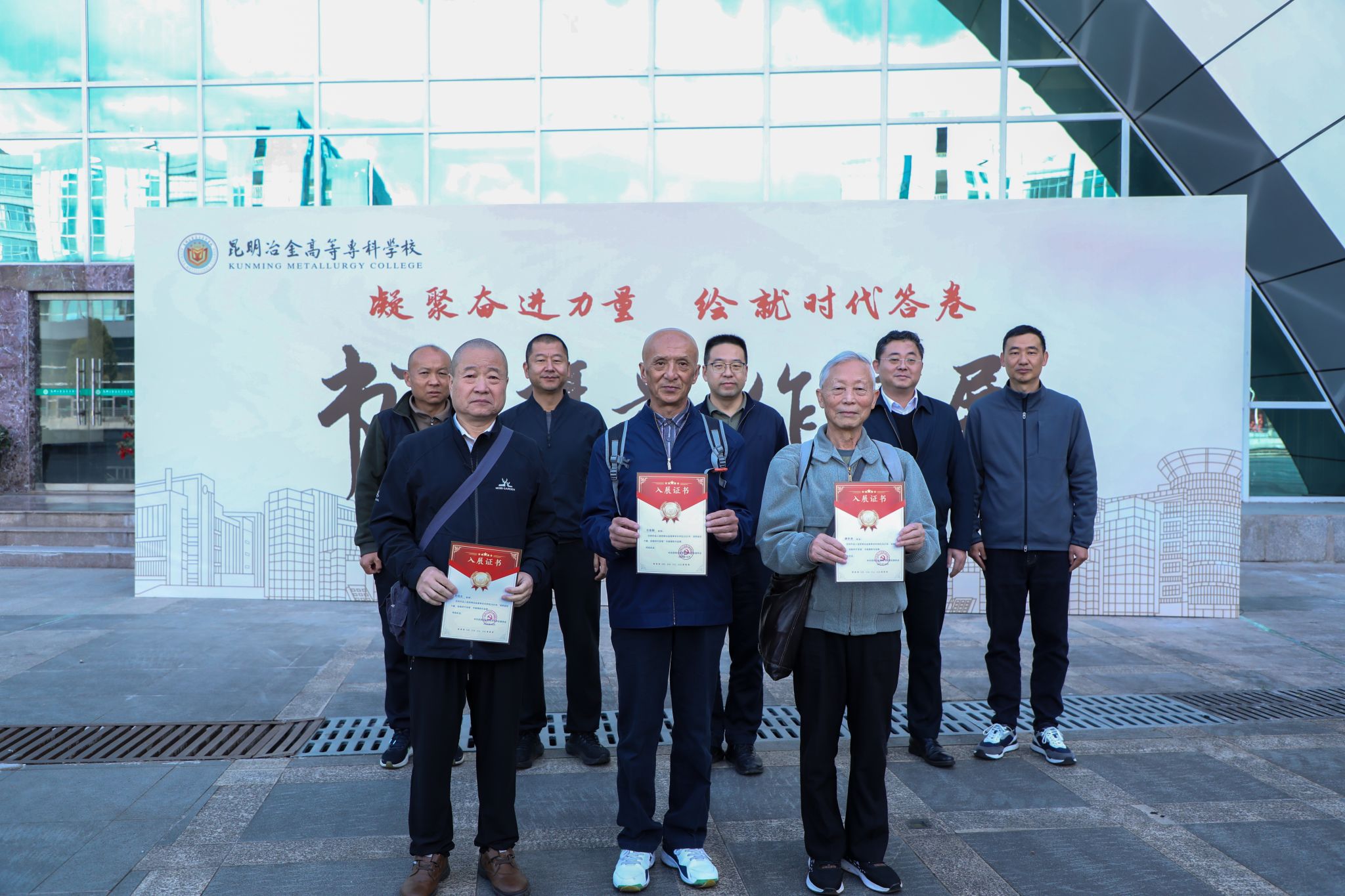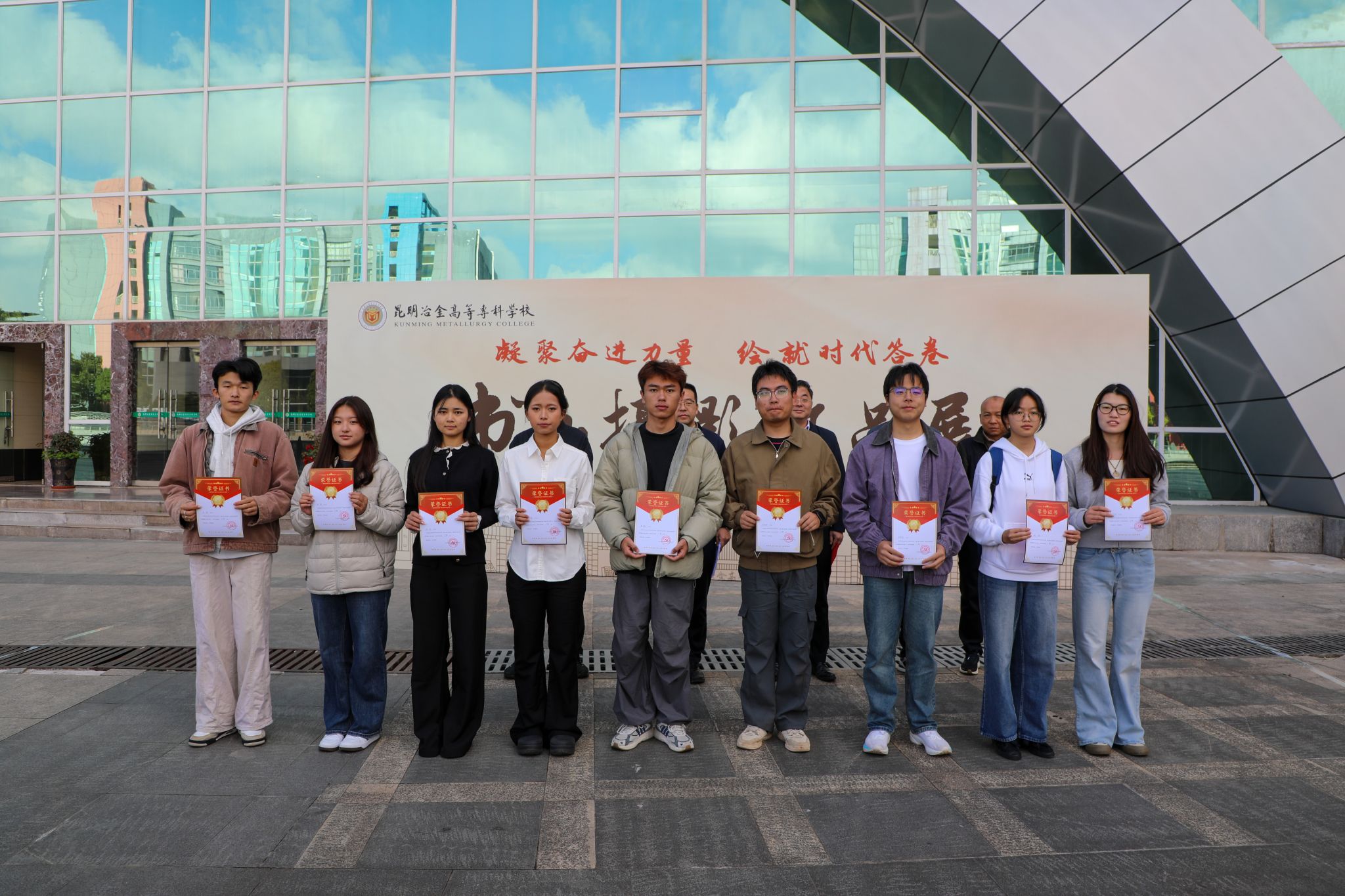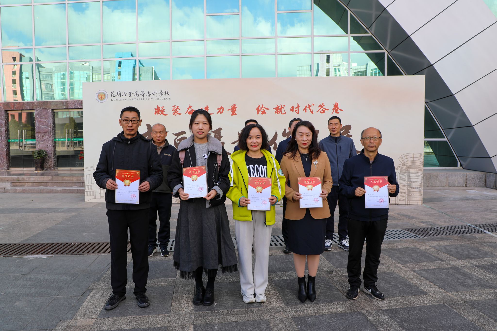 与会领导为参展的师生代表颁发入展证书并合影留念。