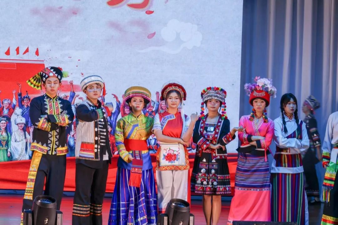民族时装秀《多彩中华・和美画卷》展示 15 个云南独有民族的服饰文化,白族扎染、傣族银饰、哈尼刺绣等非遗技艺与《民族民间音乐鉴赏》《舞蹈实践训练》课程相融,生动诠释了文化传承的基因密码。