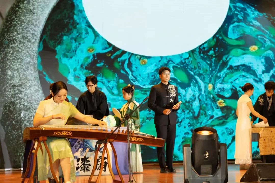本次展演以公共艺术课程为核心,将非遗文化与教学实践深度结合。沉浸式节目《漆韵书声・匠心传承》串联漆扇、书法、茶艺、古筝等传统艺术形式,依托《美术鉴赏》《书法鉴赏》等课程,让师生沉浸式感受中华优秀传统文化的艺术魅力。