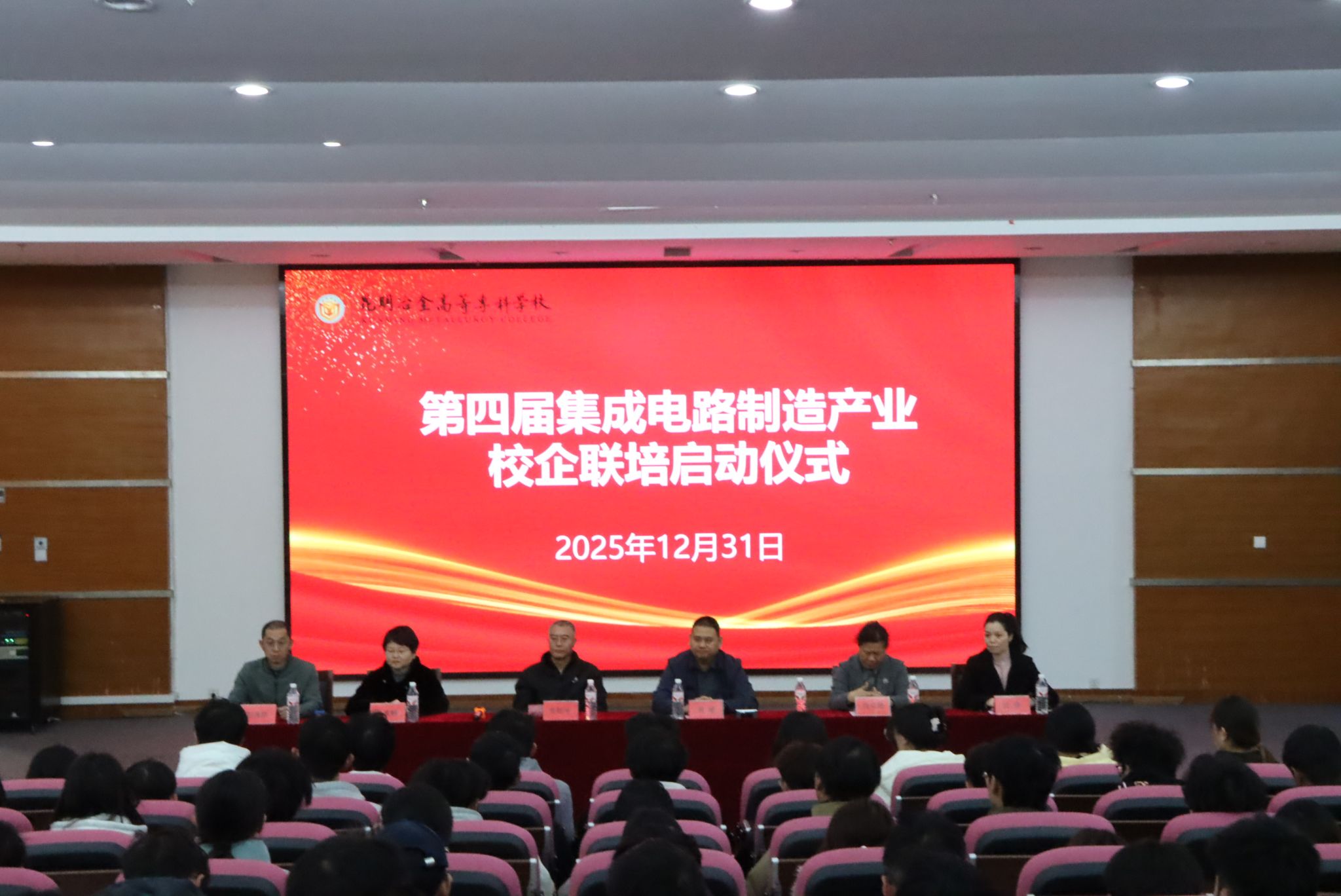 12月31日上午,由深圳市鹏城产教融合服务有限公司与我校联合举办的第四期集成电路订单班开班仪式在安宁校区主教楼第八阶梯教室举行。公司运营总监黄威、教务服务主任付娆,学校招生就业中心主任周祖坤,建筑工程学院、电气与机械学院相关负责人及订单班全体学员共同出席。仪式由建筑工程学院副院长赵逸群主持。