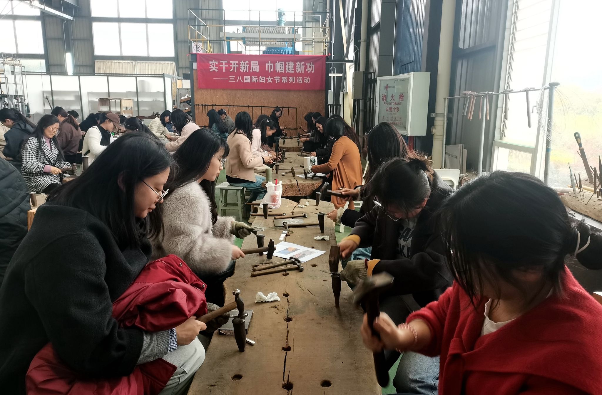 为庆祝“三八”国际妇女节,丰富女职工精神文化生活,彰显巾帼风采,3月13日,我校妇联和工会联合举办了“巾帼匠心——锡器锻造体验活动”,这是今年“三八”节系列活动之一。100余名女职工齐聚一堂,在云科云南民族民间特色金属技艺众创空间、我校金属錾刻及劳动教育基地体悟劳动乐趣与工匠精神。