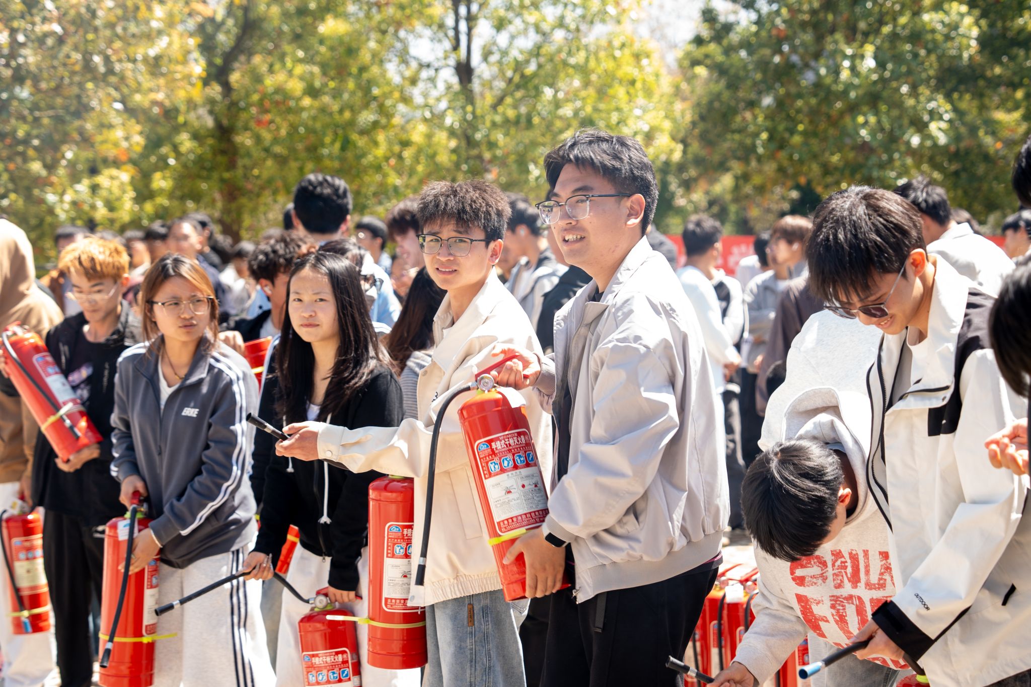 消防器械培训实操中,消防专员开展灭火实操演示,讲解“一拔、二握、三瞄、四扫”灭火器使用口诀,并组织师生代表逐一实操,熟练掌握初期火灾扑救技巧。随后,消防专员结合校园火灾典型案例,开展抗震减灾知识培训,重点讲解应急避险要点、应急物资使用规范及灾后自救互救方法。