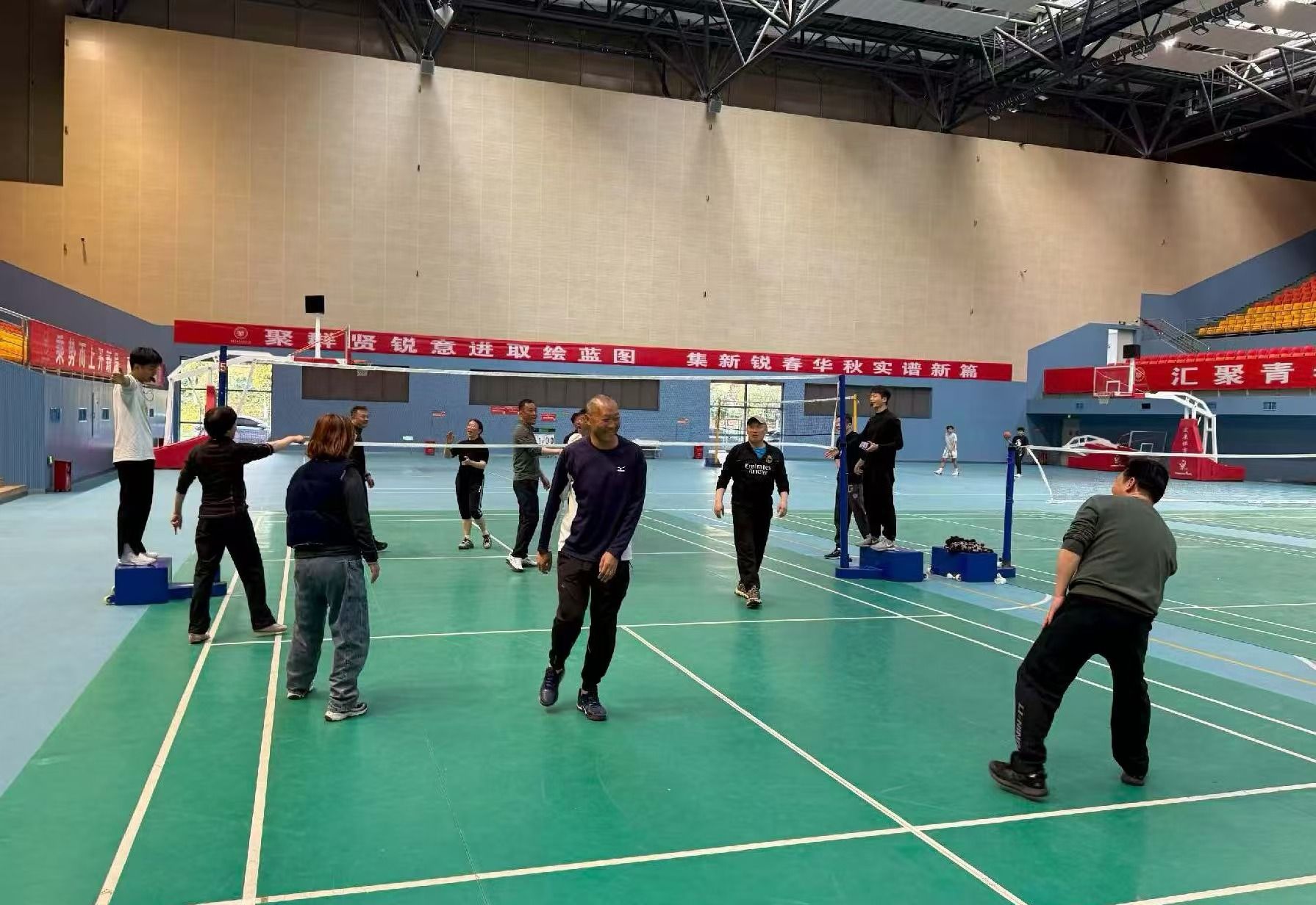 赛场上,队员们精神饱满、配合默契,发球、传球、扣杀、拦网,精彩瞬间赢得现场观众的阵阵喝彩。无论是经验丰富的老将,还是充满活力的青年教师,大家都全力以赴,展现出顽强拼搏的体育精神和团结协作的团队风采。
