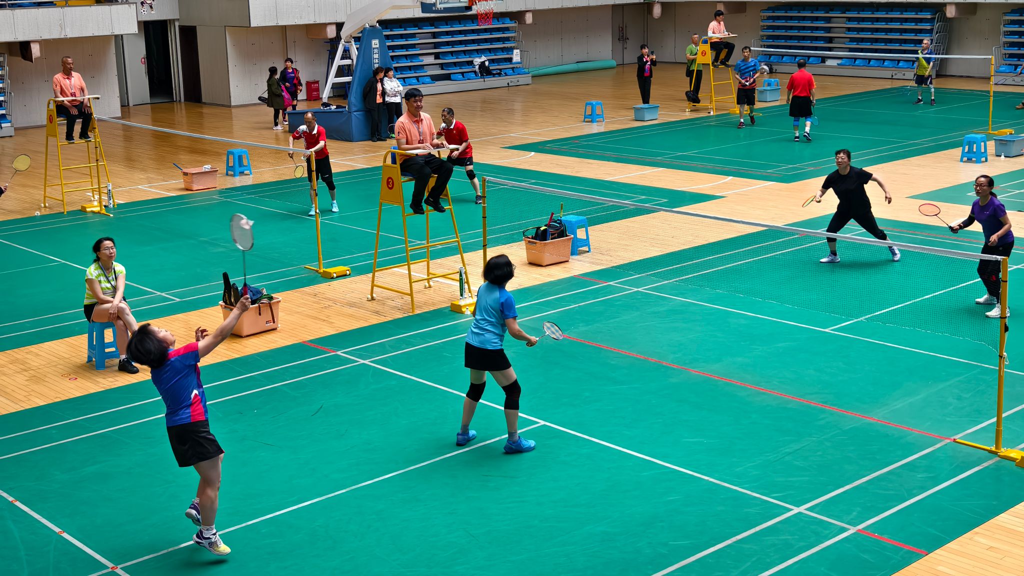 赛场上,面对各地市及行业体协的强劲对手,我校老将们精神矍铄、步伐矫健,团结协作、奋勇争先,队员们相互鼓励、默契配合,沉着冷静,每球必争,充分诠释了“生命不息、运动不止”的体育精神。
