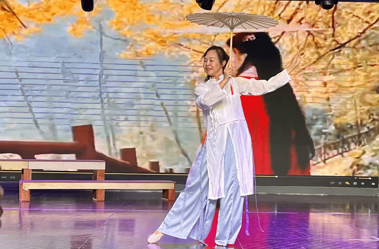 宋世如的《我们这一辈》饱含岁月沉淀,周惠群的舞蹈《等归人》细腻动人;戴琼媛的《粉墨春秋》道尽舞台悲欢,刘仁路的《听闻远方有你》诉说绵长思念;宋世如的萨克斯独奏《大地的港口》温柔缱绻,刘毅琼与易建华的《敖包相会》浪漫温馨。最后,姚老师演唱的《茉莉花》清灵婉转,为演出画上圆满句号。