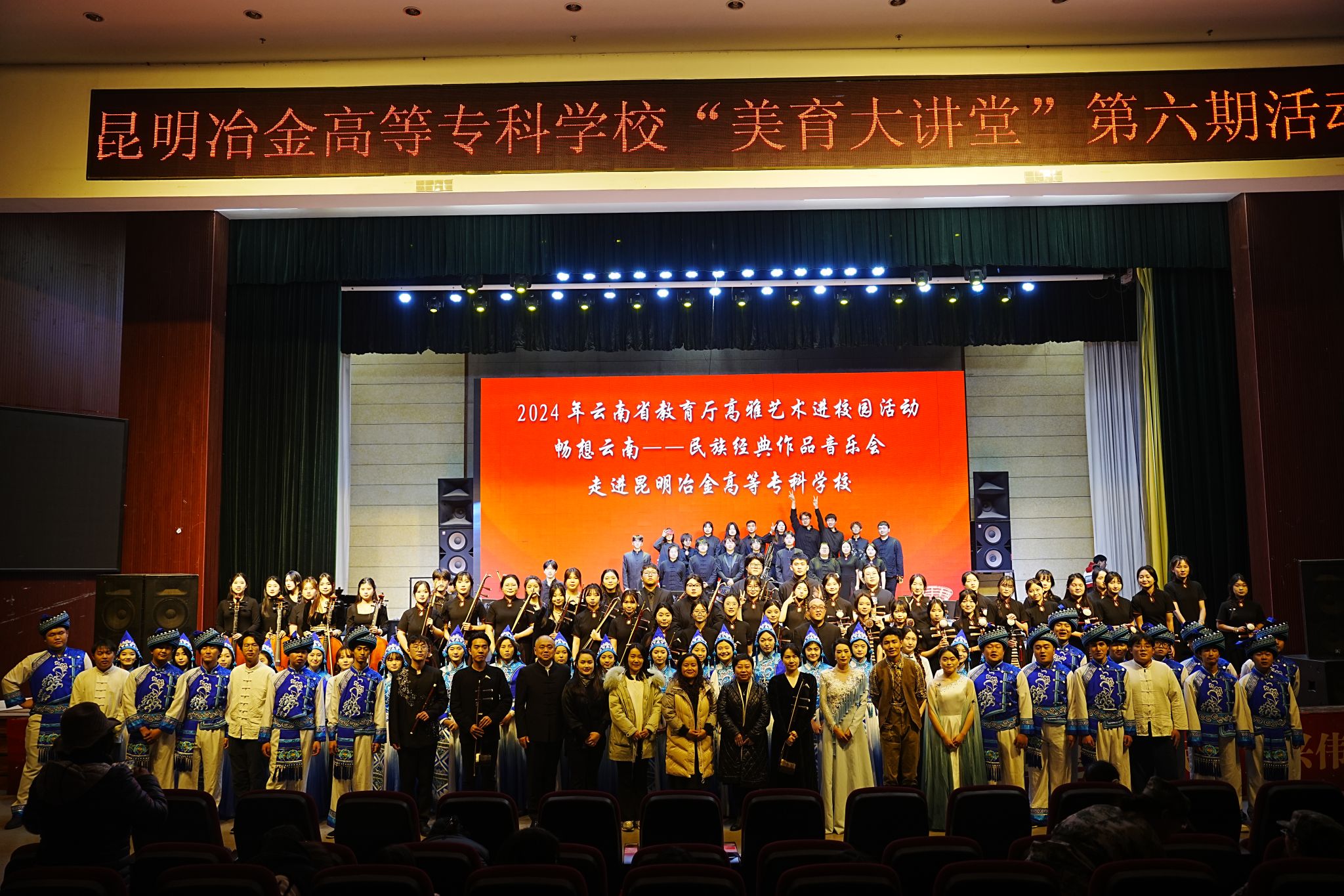 为落实云南省教育厅关于开展2024年“高雅艺术进校园”活动的通知要求,我校于12月18日-19日在大学生艺术中心成功举办了“美育大讲堂”系列活动——云南农业大学交响管乐音乐会和昆明城市学院畅想云南民族经典作品音乐会。本次活动由云南省教育厅主办,学校通识与素质教育学院、学生处(学生工作部、武装部)、校团委共同承办,特邀云南农业大学交响管乐团和昆明城市学院“博雅之声”合唱团与民族管弦乐团倾情演出。