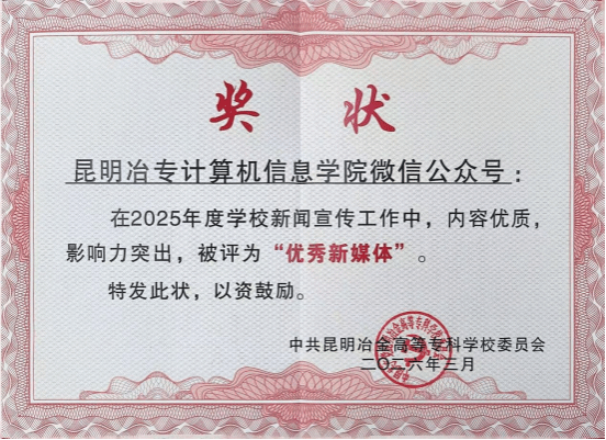 计算机信息学院在学校2024年度新闻宣传工作中荣获“十佳新媒体”称号