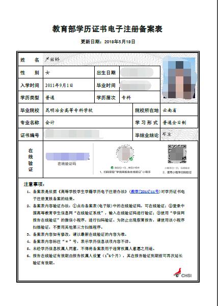 附件1:教育部学历认证书电子注册备案表样式