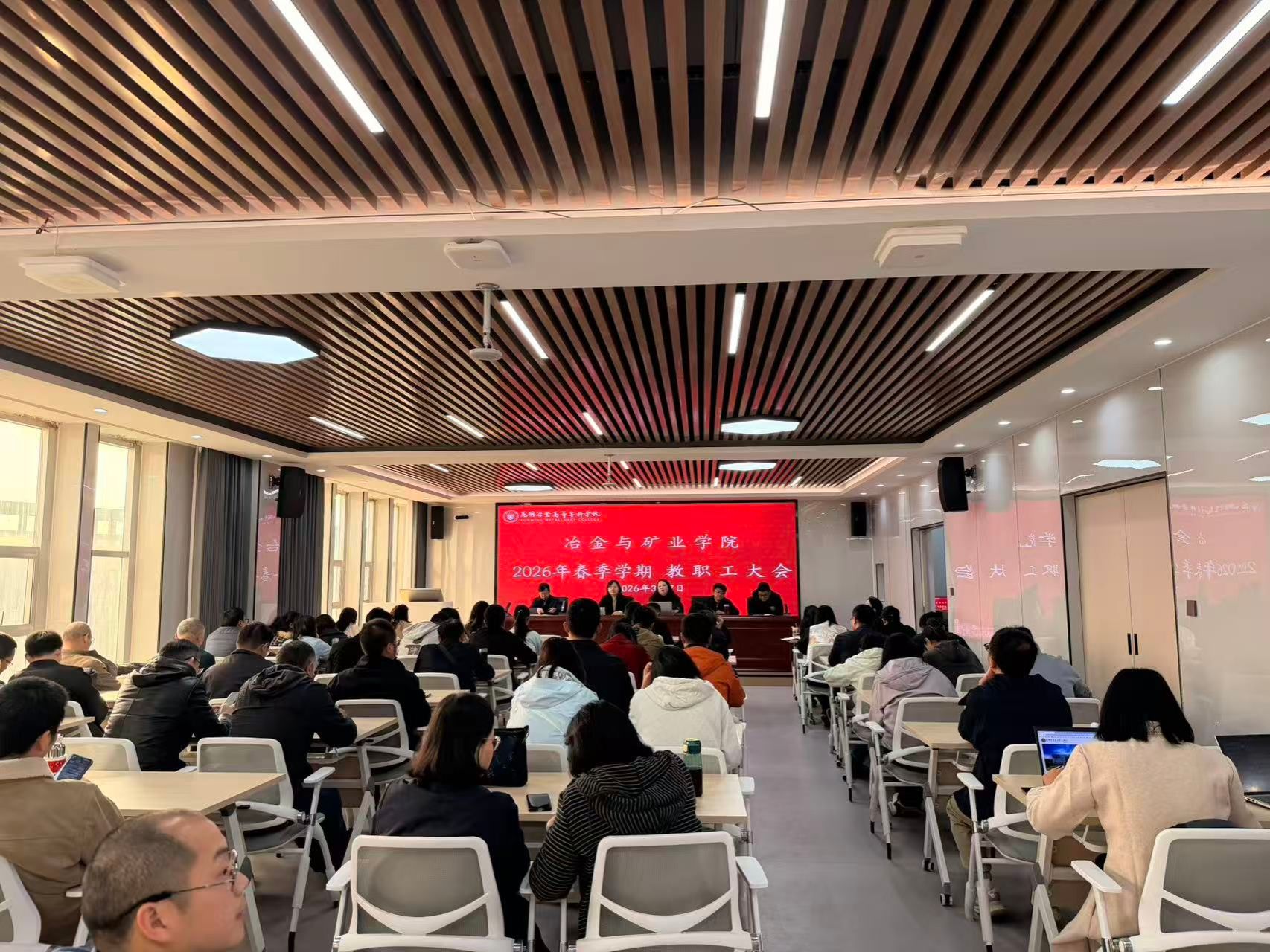 2026年3月7日,冶金与矿业学院在614教室召开全体教职工理论学习大会,会议由学院党委书记马磊主持,全体教职工参会。本次学习以“树立正确政绩观、激发担当新动能”为主题,深入学习贯彻重要精神,引导教职工以实干担当推动学院发展。