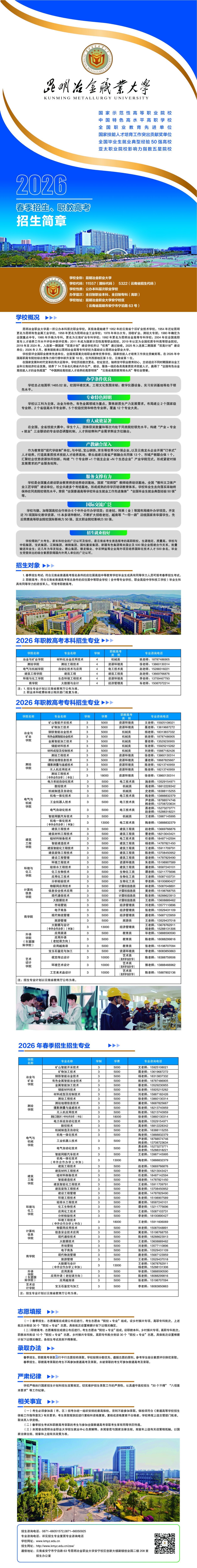 昆明冶金职业大学2026年春季招生、职教高考招生章程